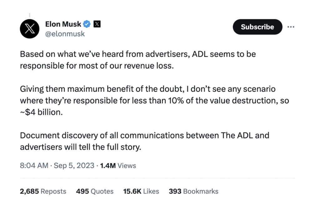 Il n’y a rien à attendre d’une poursuite contre l’ADL. Ou de Musk, le seul fait qu’il en parle suffit.